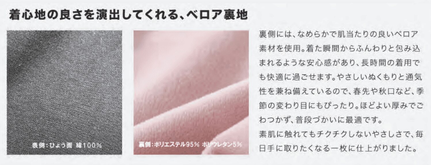 裏側/ポリエステル 95%、ポリウレタン 5%