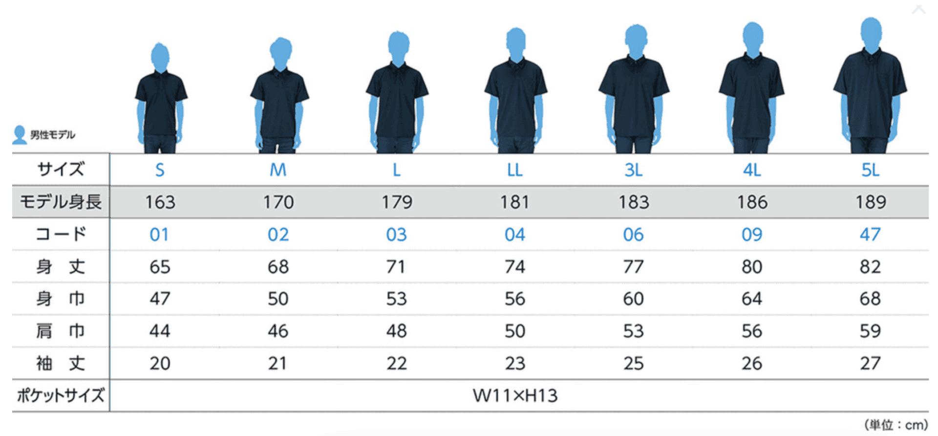 | S | M | L | LL | 3L | 4L | 5L | |