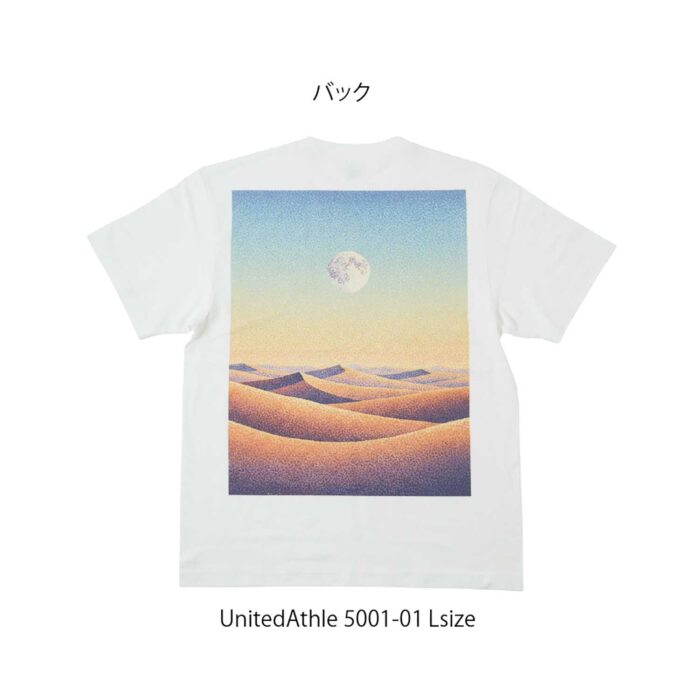 Tシャツの前と後に大判インクジェットした場合、前後の合わさる部分(着用したときに真横になる部分)はデザインが切れます。(スジが入ります)前後のデザインも完璧に合わせることが出来ないので、ご理解の上ご注文してください。