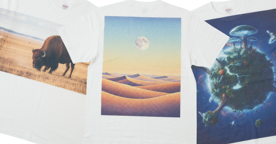 ほぼTシャツいっぱいにプリントができるので、インパクトのあるデザインになります。