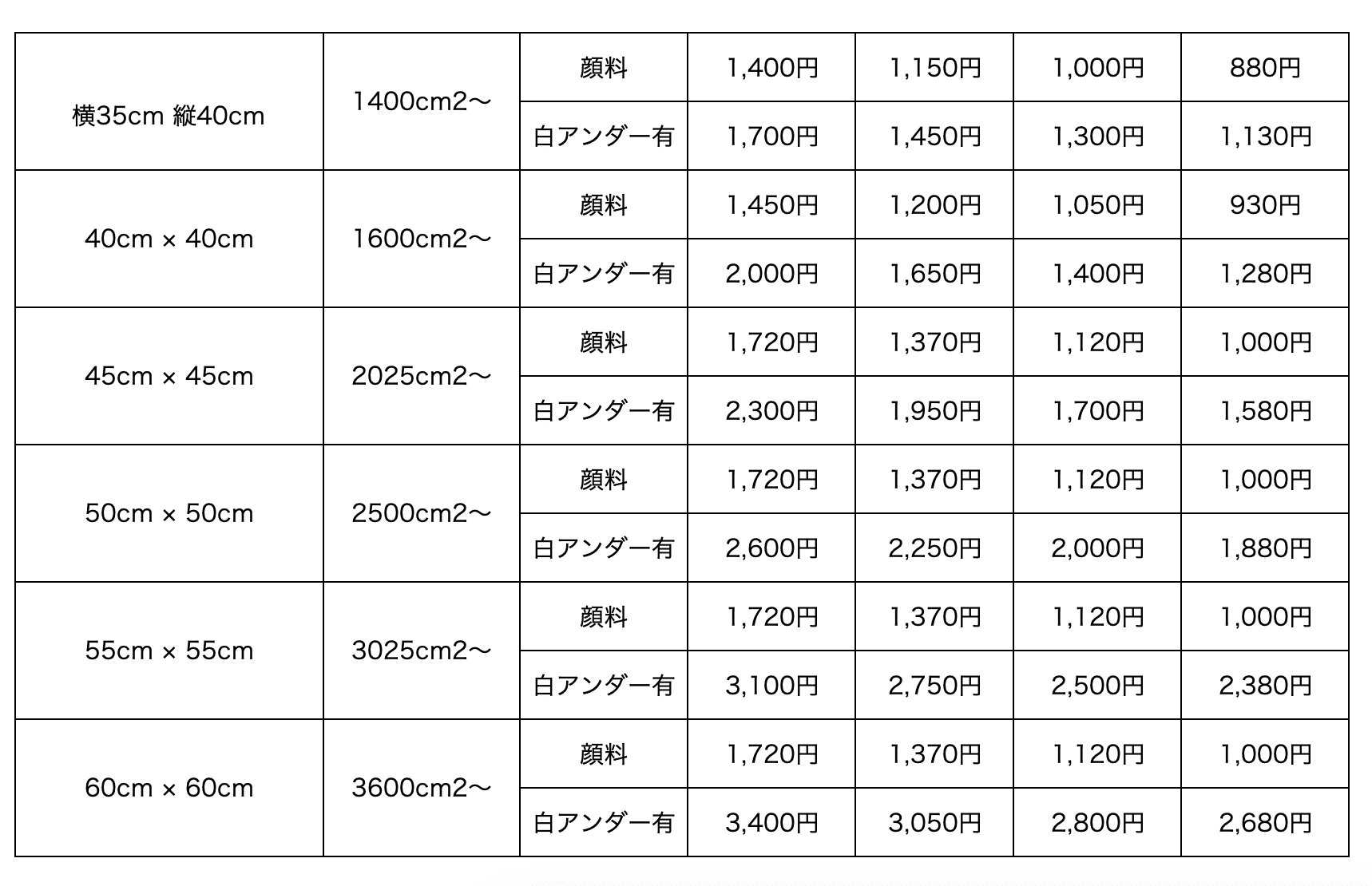 ※ 柄のサイズを変更する場合は、追加の柄サイズごとに 30,000円の版代が追加で必要です。