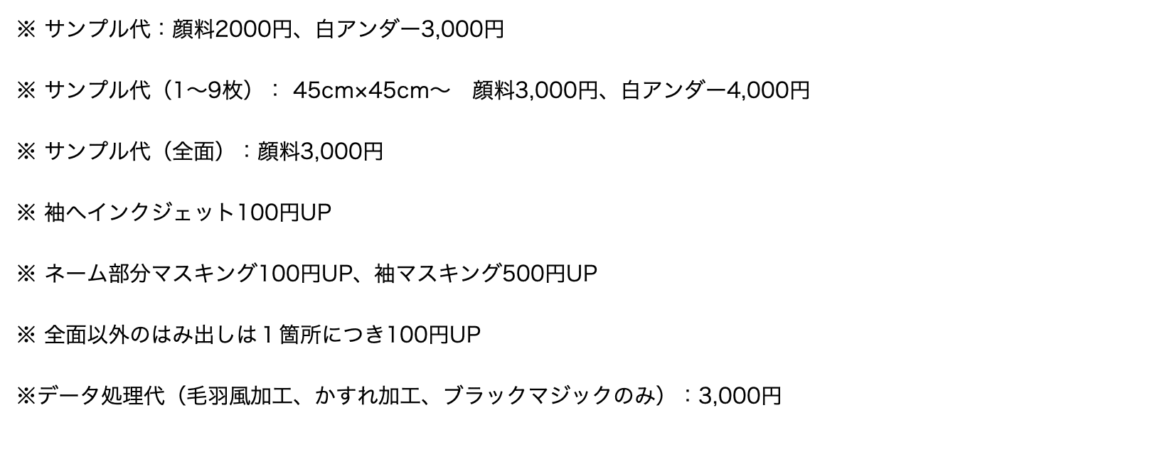 ※ シルク追加の場合のサンプルに関して:3,000円