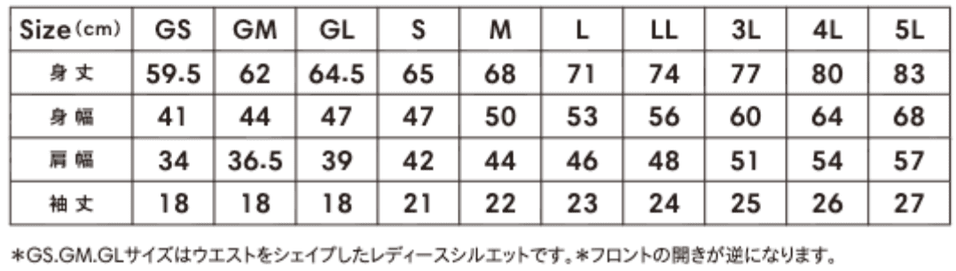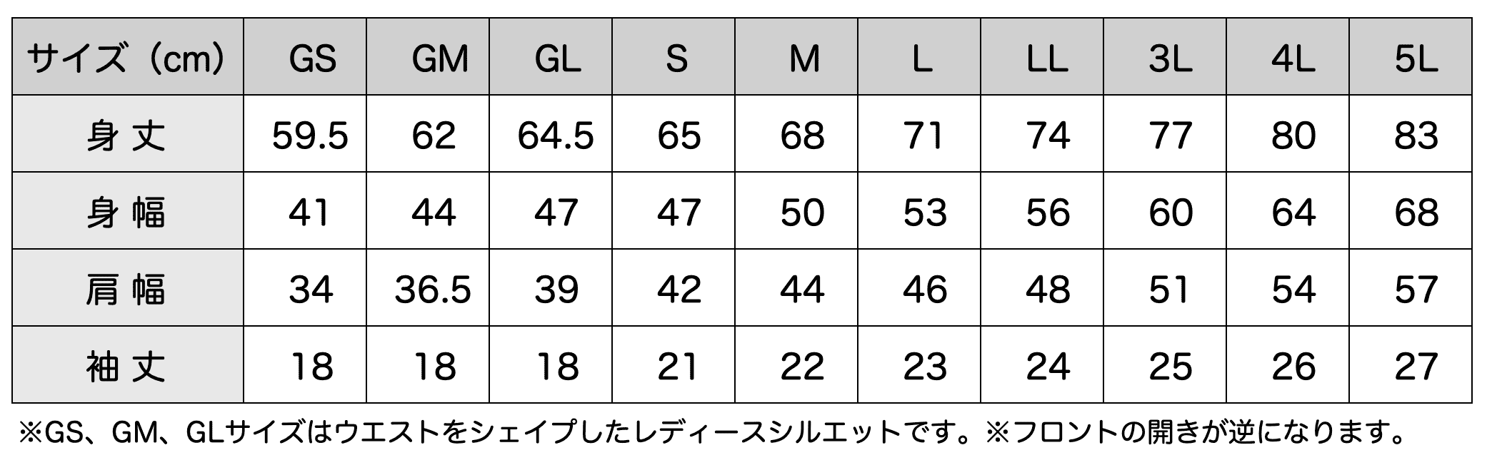 取得中… メーカー在庫更新| GS | GM | GL | S | M | L | LL | 3L | 4L | 5L | |