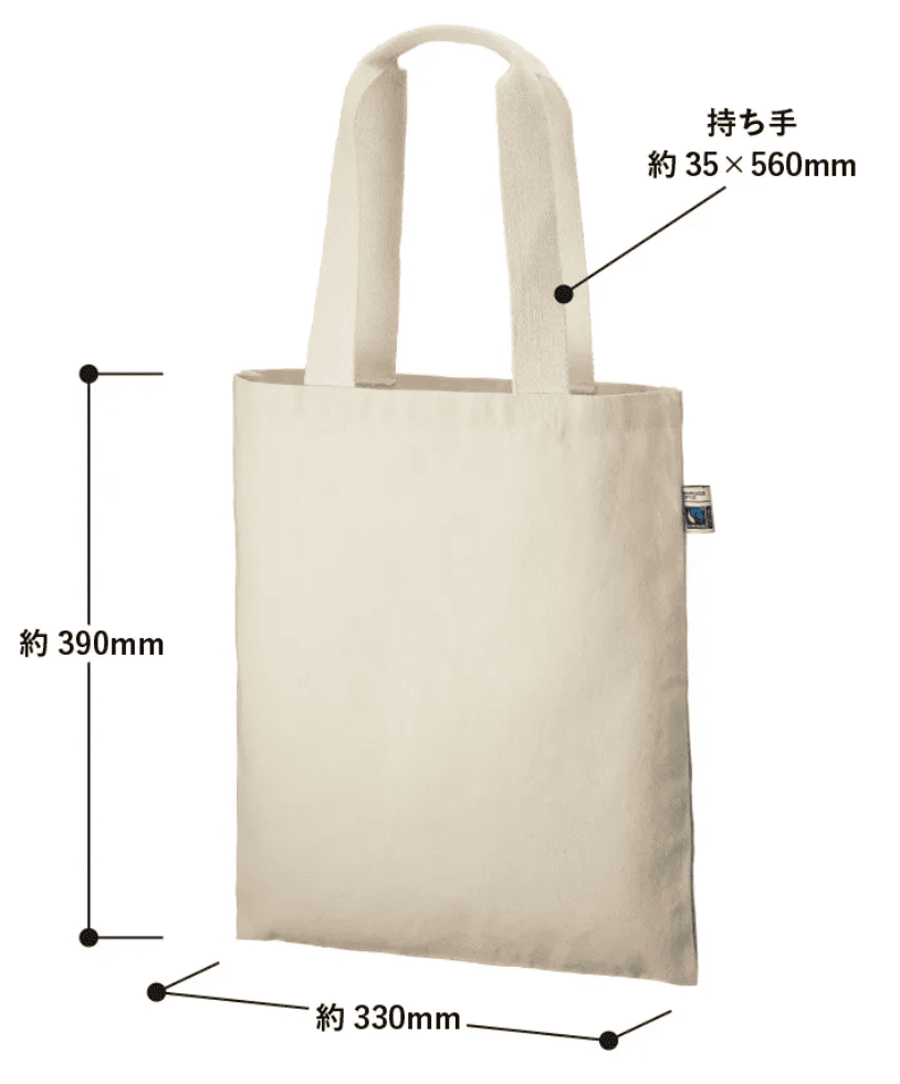 フェアトレードコットンを使用したコットンバッグです。国際フェアトレード認証ラベル付きのアイテムとなります。