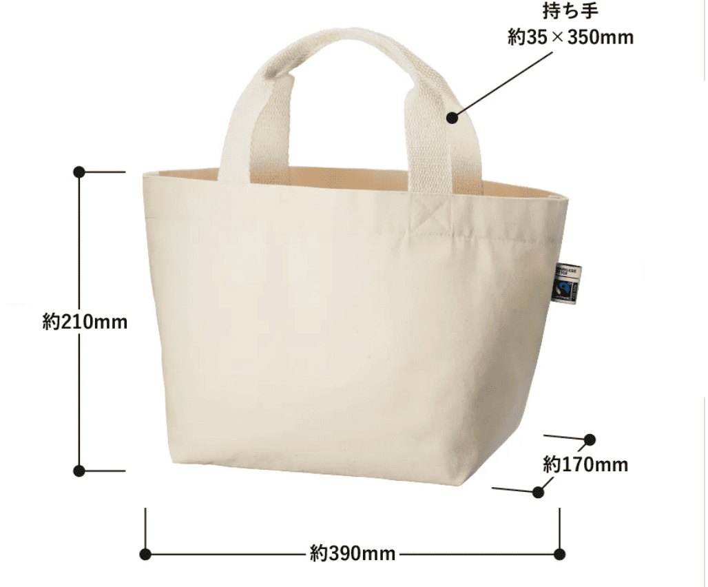 フェアトレードコットンを使用したコットンバッグです。国際フェアトレード認証ラベル付きのアイテムとなります。