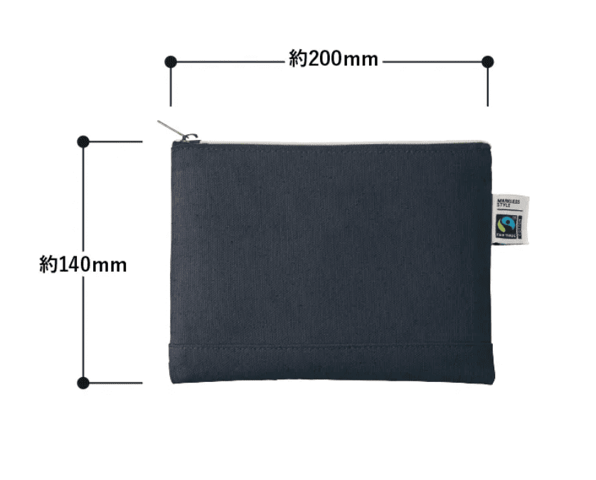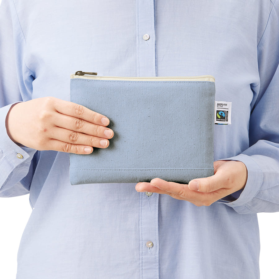 フェアトレードコットンを使用したキャンバスポーチです。国際フェアトレード認証ラベル付きのアイテムとなります。