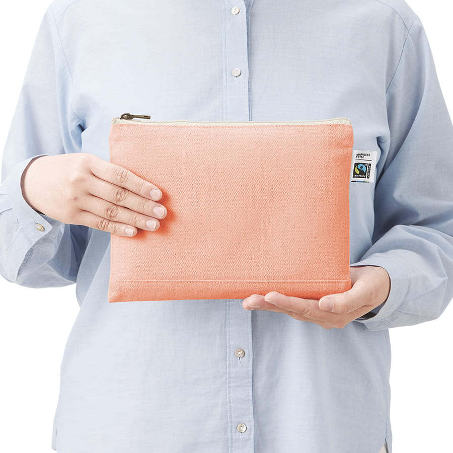 フェアトレードコットンを使用したキャンバスポーチです。国際フェアトレード認証ラベル付きのアイテムとなります。
