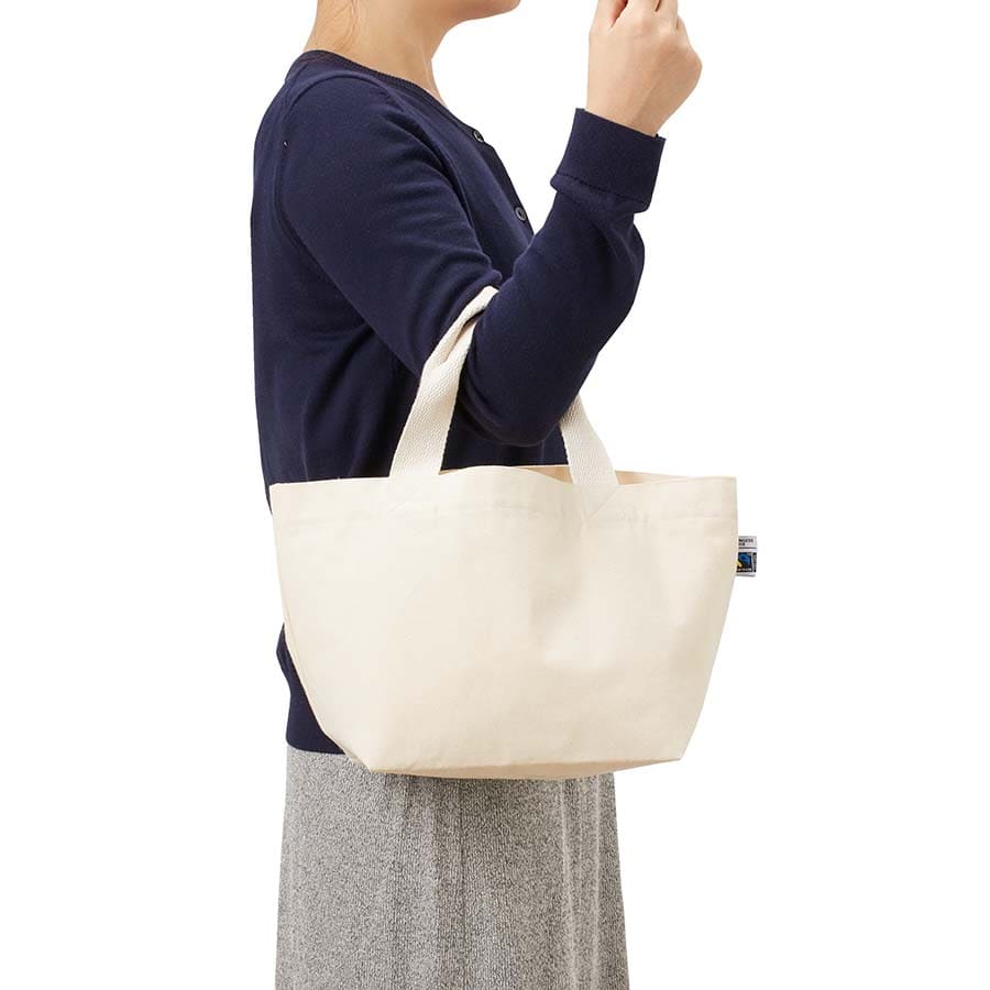 フェアトレードコットンを使用したキャンバストートです。国際フェアトレード認証ラベル付きのアイテムとなります。