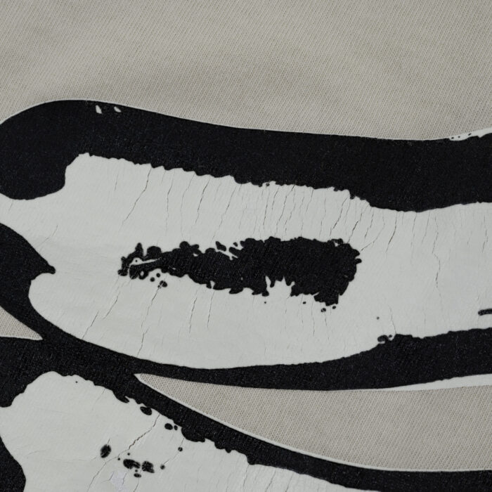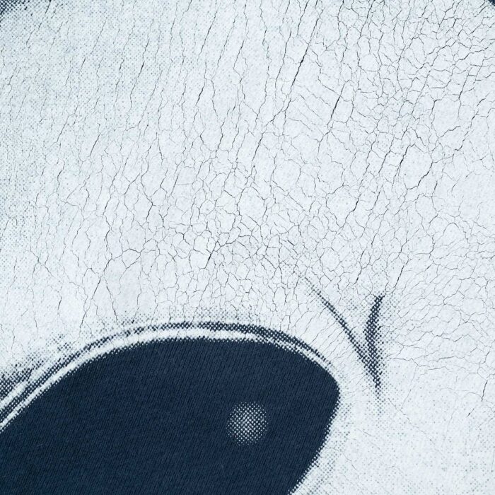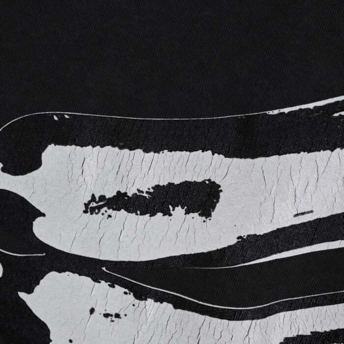 蓄光クラックプリントは、蓄光プリントとクラックプリントをかけ合わせたプリント技法です。ヴィンテージ感あふれるプリントに、蓄光を組み合わせた特別感のあるプリント技法です。