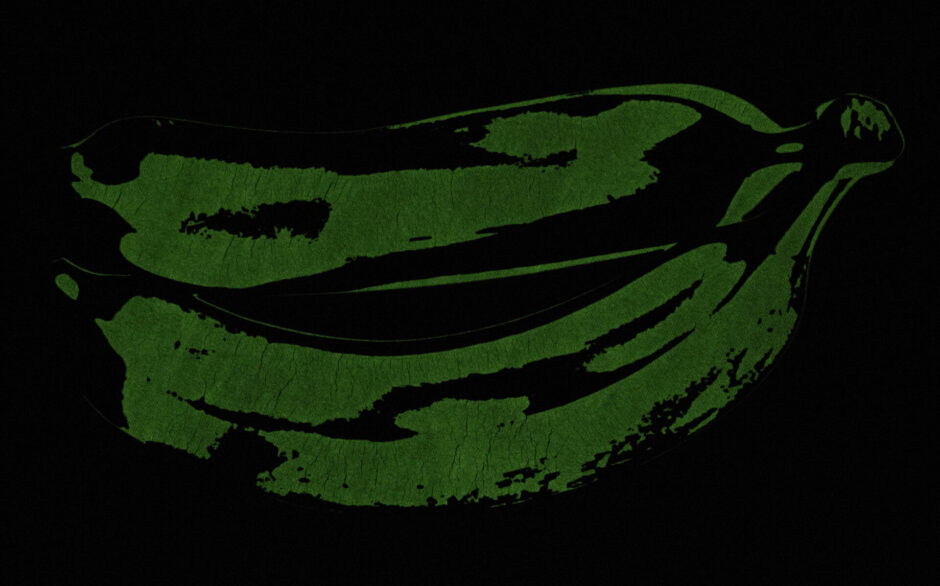 蓄光クラックプリントは、蓄光プリントとクラックプリントをかけ合わせたプリント技法です。ヴィンテージ感あふれるプリントに、蓄光を組み合わせた特別感のあるプリント技法です。