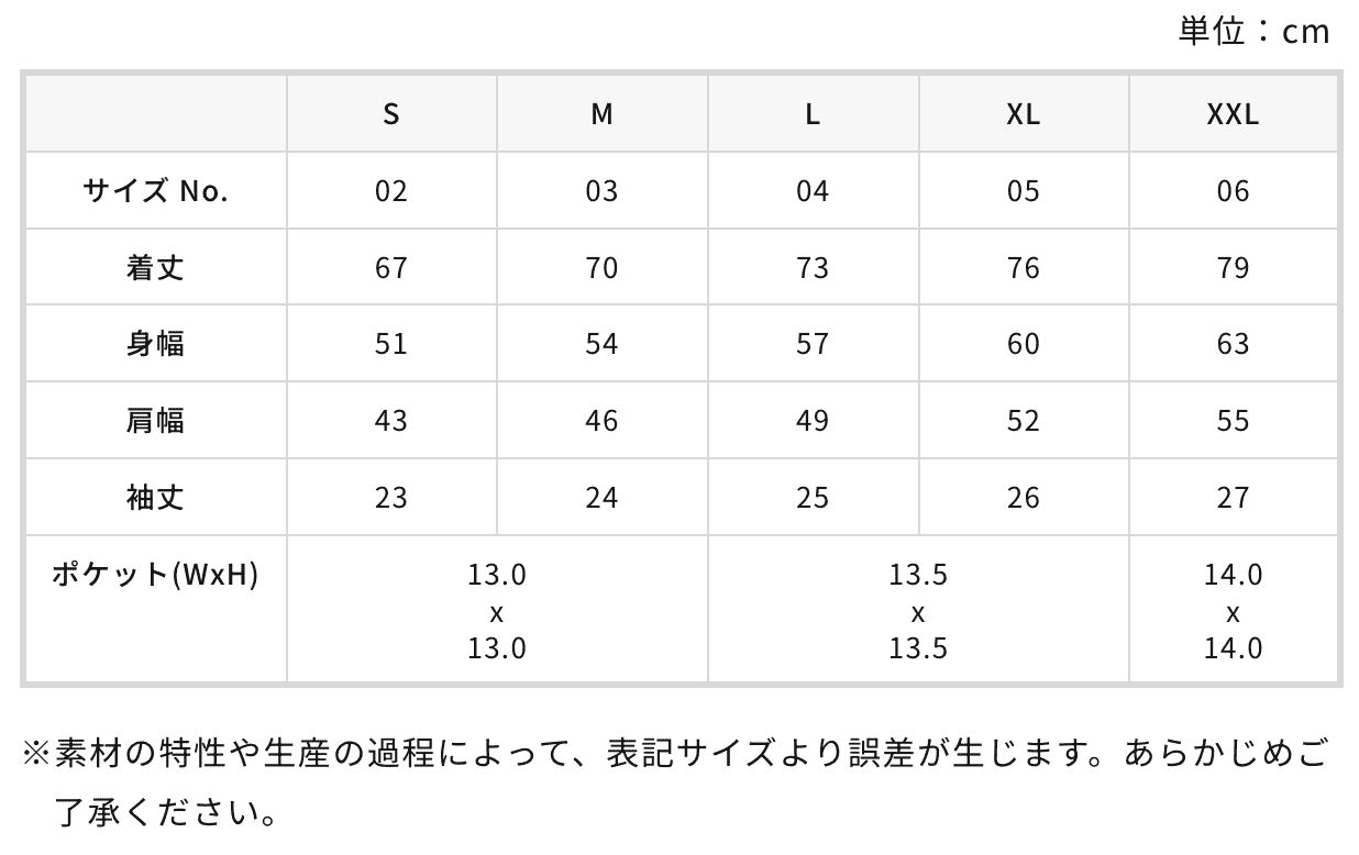 取得中… 在庫更新| S | M | L | XL | XXL | |