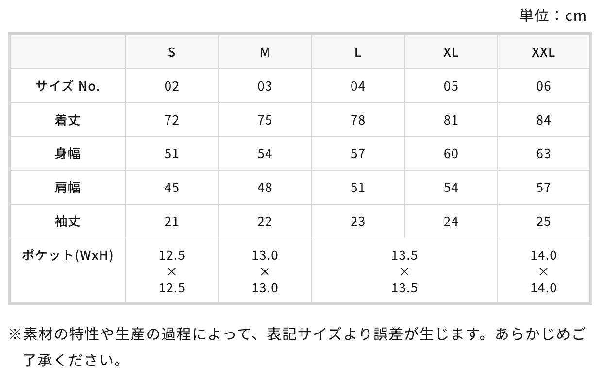 取得中… 在庫更新| S | M | L | XL | XXL | |
