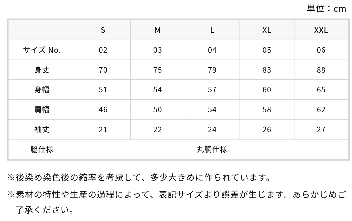 5001-01よりも製品染め後の縮率を考慮したサイジングです。