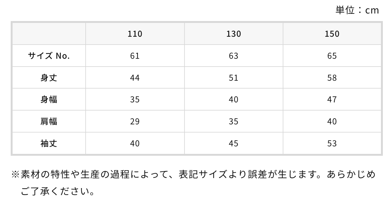 取得中… 在庫更新| 110cm | 130cm | 150cm | |