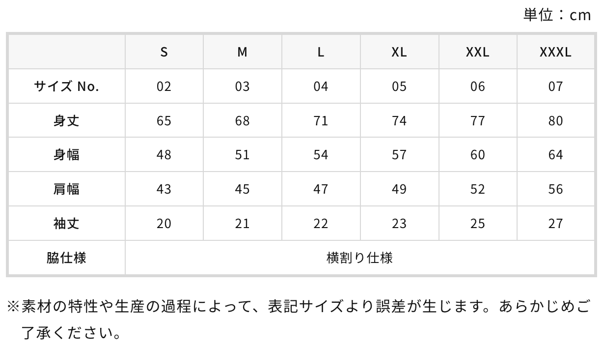 取得中… 在庫更新| S | M | L | XL | XXL | XXXL | |