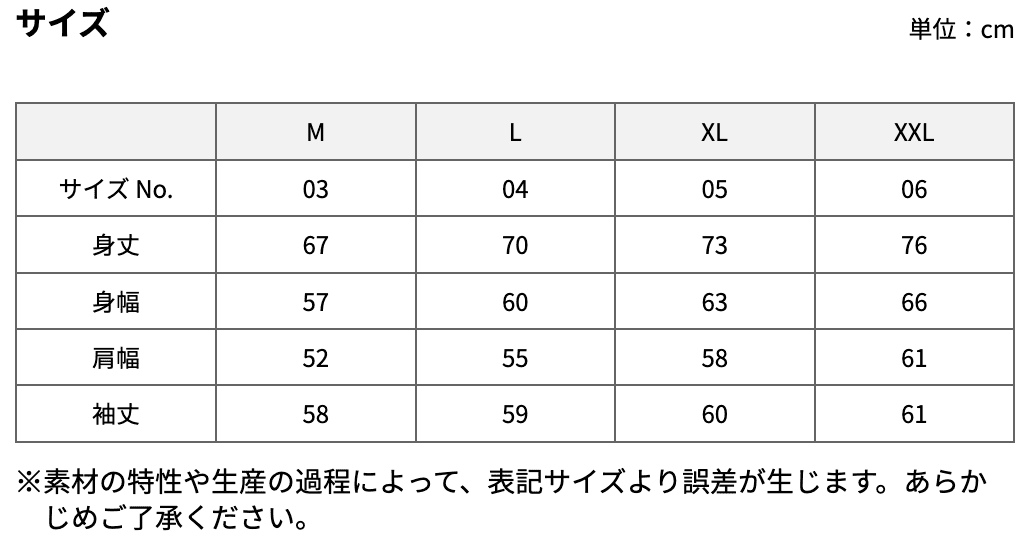 取得中… メーカー在庫更新| M | L | XL | XXL | |