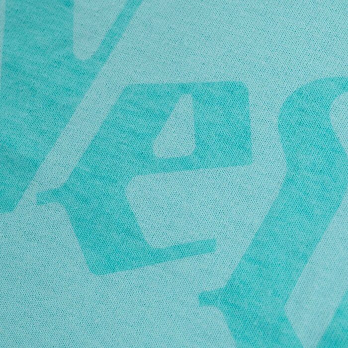 ラバープリントが生地にの上にベタッとのった風合いに対して、染み込みプリントは生地にインクが染み込んだ柔らかい風合いが特徴です。 表面にインクがのっているような仕上がりではありません。